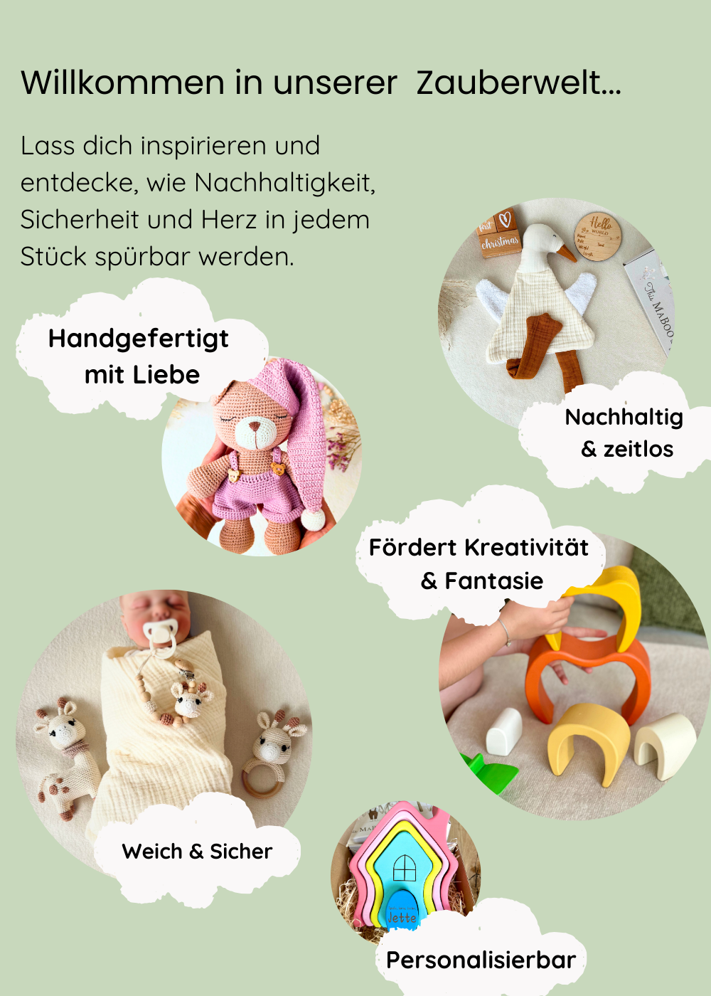 Manchmal sind es die kleinen Dinge, die große Gefühle auslösen. Bei MaBoo Box findest du mehr als nur Geschenke – du findest Erinnerungsstücke, die von Herzen kommen. Unsere handgefertigten Einzelstücke werden aus nachhaltigen Materialien von Mamis gefertigt und liebevoll verpackt. Jedes Detail wird mit Sorgfalt ausgewählt, um besondere Momente zu schaffen, die ein Leben lang in Erinnerung bleiben.